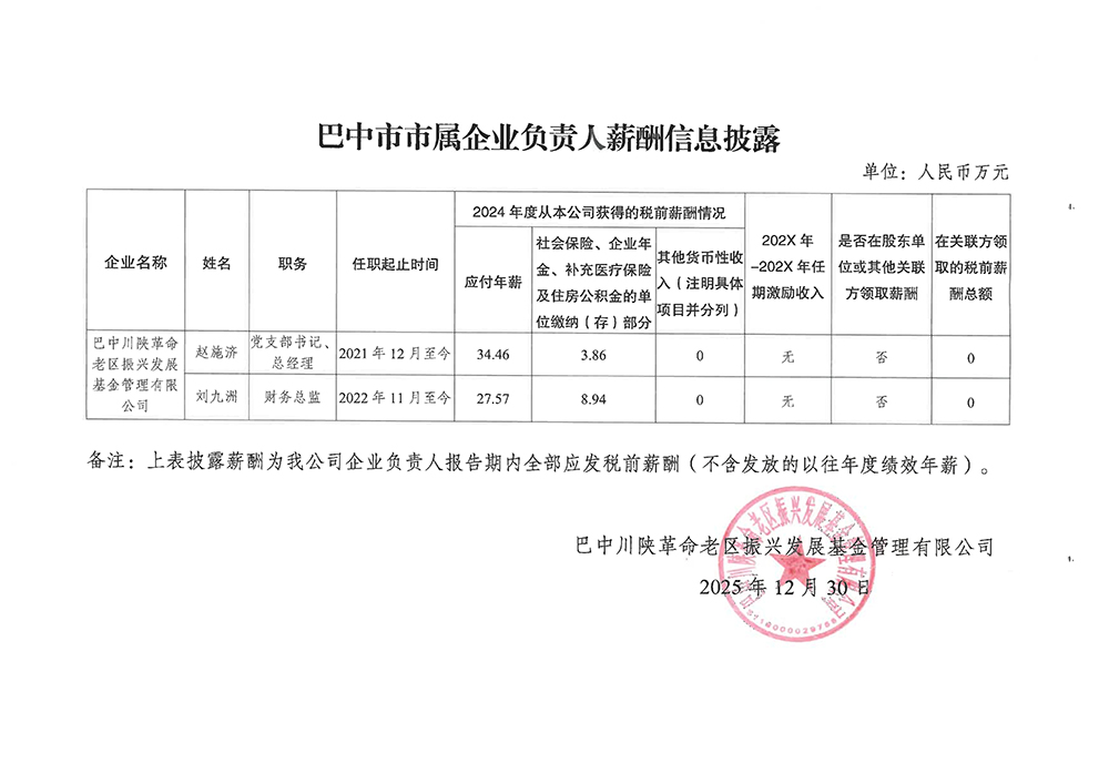 巴中市市屬企業(yè)負(fù)責(zé)人薪酬信息披露
