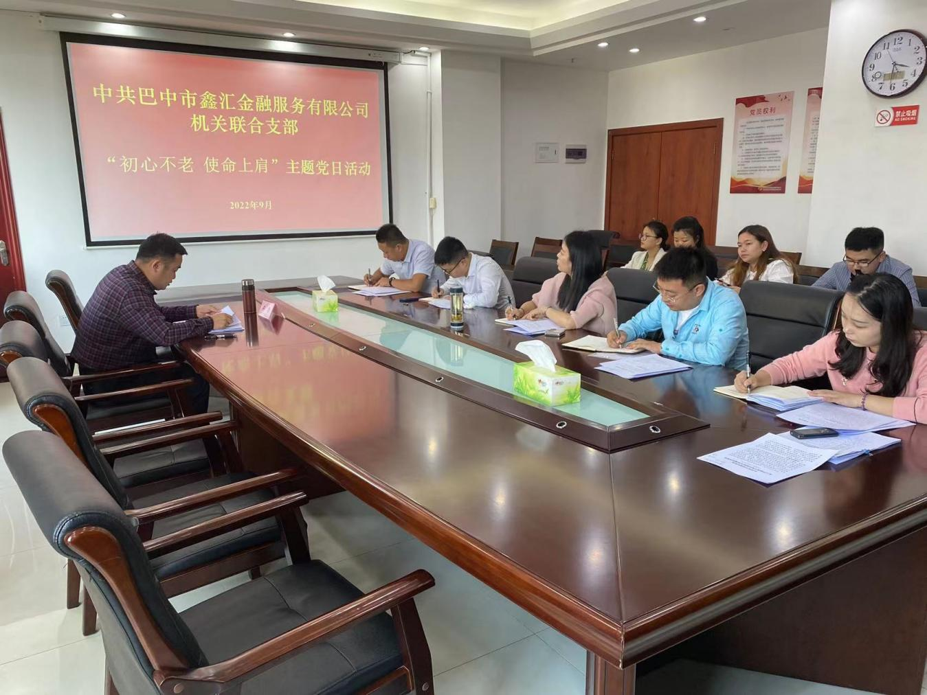 為進一步加強基層黨組織建設,切實發(fā)揮黨員干部的先鋒模范作用,9月28日,中共巴中市鑫匯金融服務有限公司機關聯(lián)合支部開展“初心不老 使命上肩”主題活動,機關聯(lián)合支部全體黨員、公司全體職工參加。